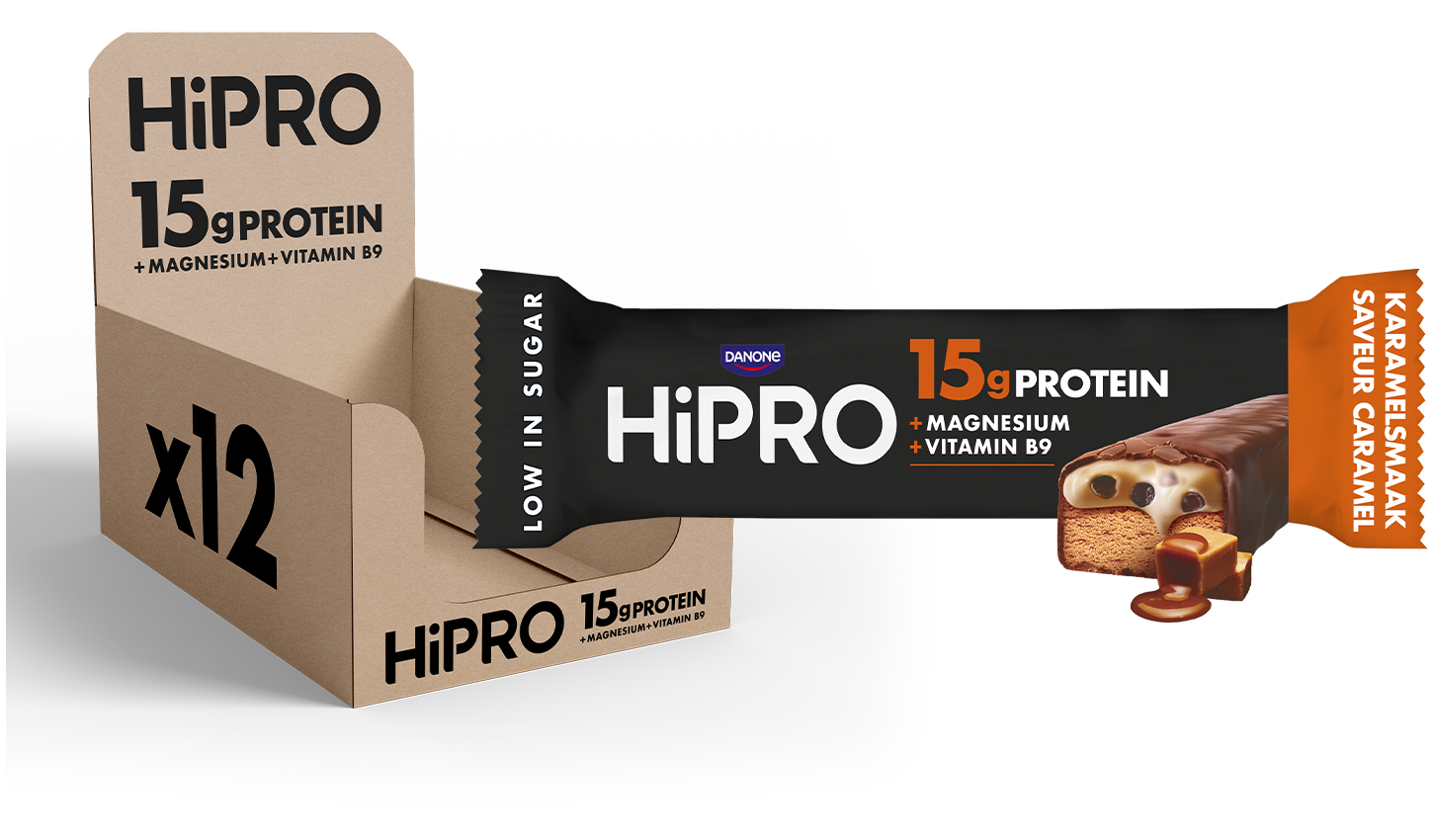 De Danone HIPRO Caramel reep biedt een perfecte balans tussen smaak en voeding. Met 15 gram eiwitten per reep is het een uitstekende keuze voor een sportieve en smakelijke snack.
